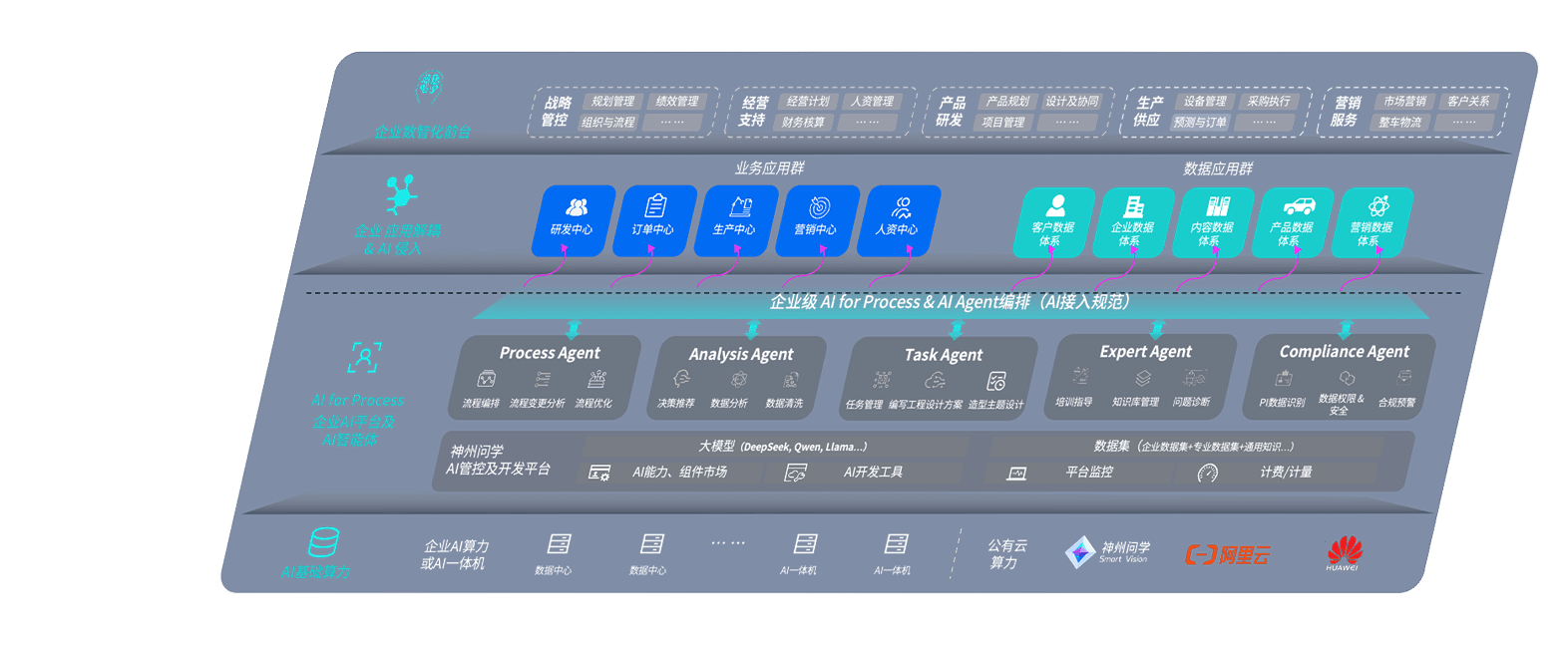 端到端的一站式AI工作空间深度融合了从企业战略规划到日常经营的全流程业务板块,,定向解决车企内部领域多、、、部门多、、链条长、、、、场景碎片化等难题,,,,支持车企快速构建以AI为核心的生产力写作体系,,实现任务执行与AI能力的无缝集成与交互